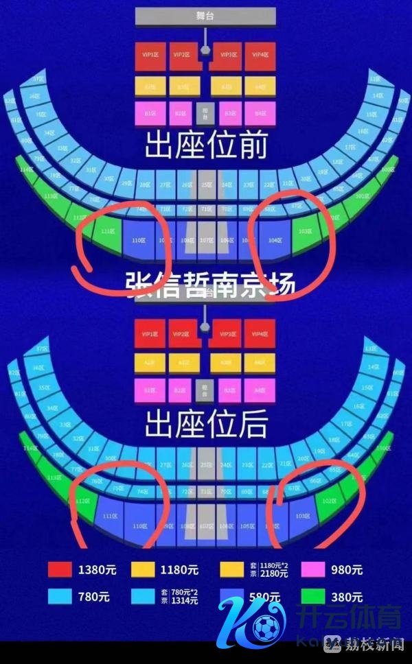 跟着投诉东说念主数持续加多,歌迷们已而发现,大麦网上的座位默示图悄然间发生了更变——原先处于绿色区域、售价380元的103和111区,也曾形成了代表售价580元的蓝色,这一操作坐窝引起了歌迷们的热烈不悦。