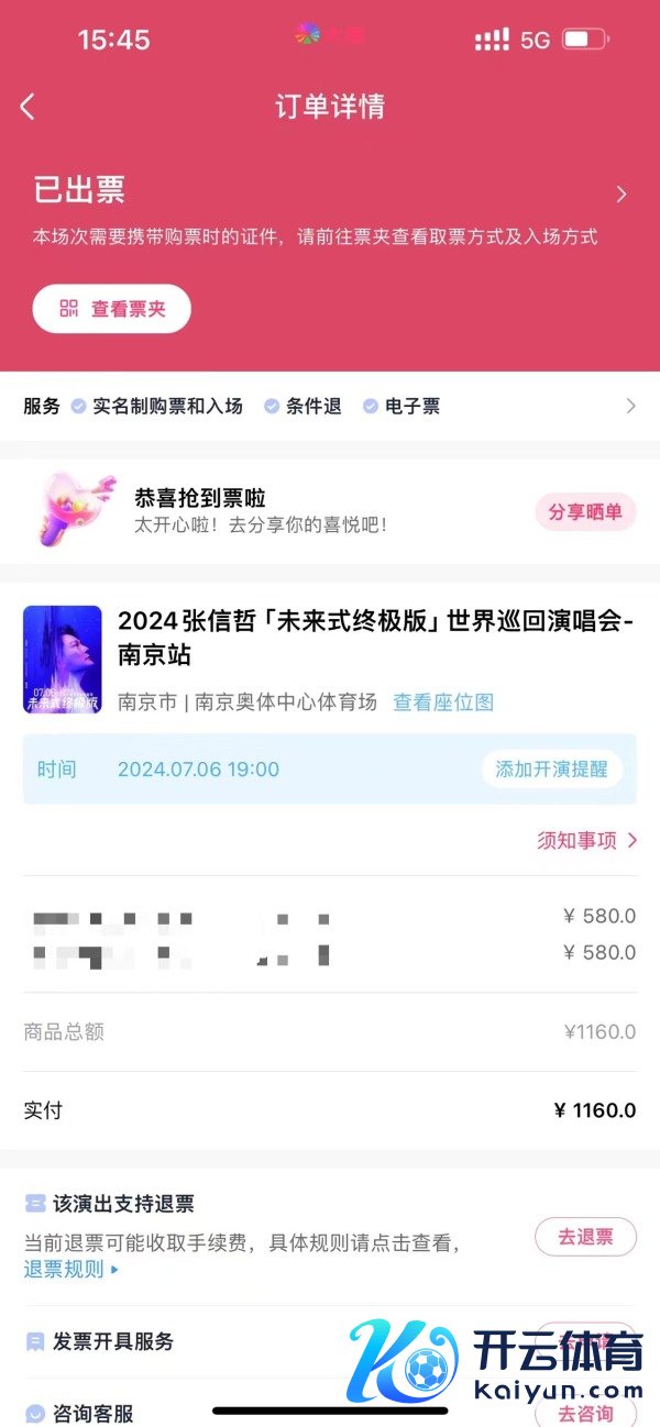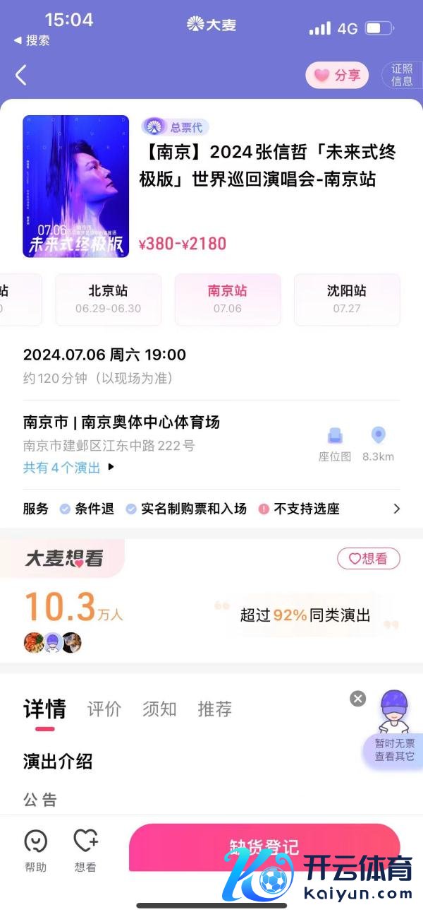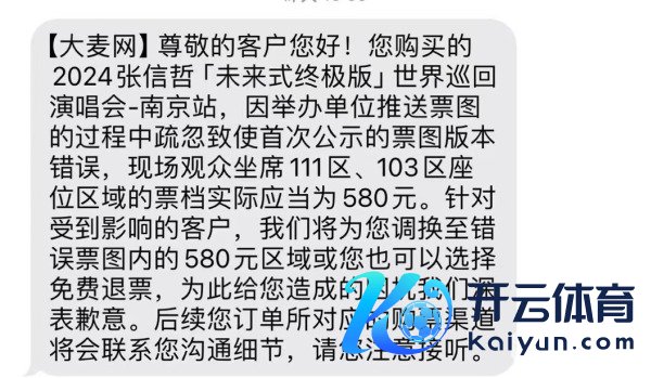 7月6日,著名歌手张信哲将在南京奥体中心举办演唱会,然而,有不少歌迷在大麦网购票后,果真莫得被安排在我方购买的指定区域内开云体育,这是怎样回事儿呢?