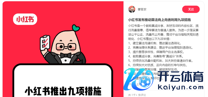 小红书告示推出九项举措
