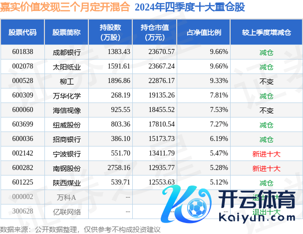 嘉不二价值发现三个月定开羼杂为羼杂型-偏股基金,凭证最新一期基金季报清晰,该基金金钱成就:股票占净值比95.38%,无债券类金钱,现款占净值比4.72%。基金十大重仓股如下: