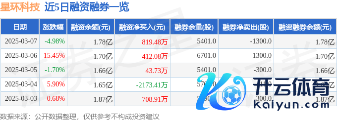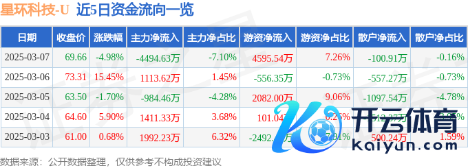 本站音问,为止2025年3月7日收盘,星环科技(688031)报收于69.66元,下落4.98%,换手率9.43%,成交量8.83万手,成交额6.33亿元。